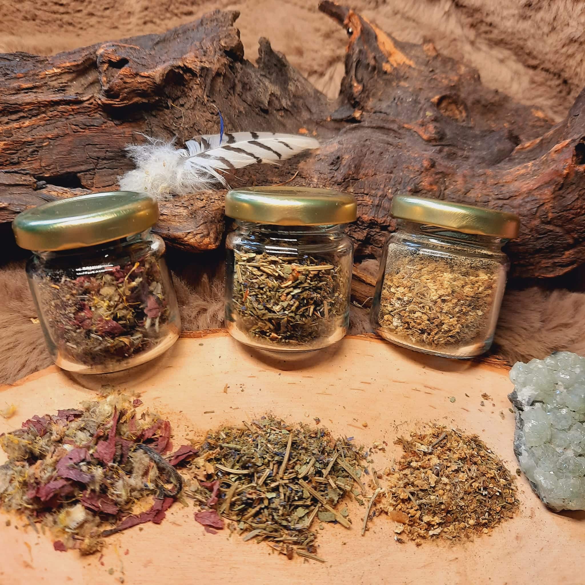 Bewusstsein: Copal, Lärchenharz, Veilchen, Mohn, Lavendel, Königskerzen Blüte, Huflattich Blüte, Spitzwegerich